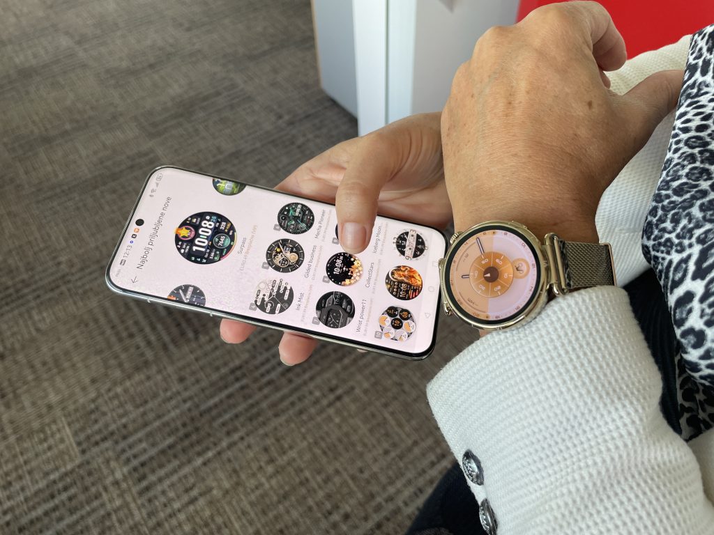 Srce ure je njen čudovit AMOLED zaslon, ki očara z barvitostjo in svetlostjo. Sijaj doseže do 3000 nitov, kar pomeni, da ostane čitljiv tudi na močnem soncu, recimo, ko klepetam s prijateljico na kavi na terasi ali ko tečem ob obali.