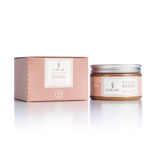 Kakavova negovalna krema je namenjena negi izsušene in normalne, nepoškodovane kože telesa. Krema kožo mehča, nahrani, navlaži in osveži. Hkrati jo ščiti pred izgubo vlage in pospešuje prekrvavitev telesa. Maslo, bogato z vitaminom E, teobrominom, kofeinom in antioksidanti, in mešanica izbranih rastlinskih olj podpirajo sposobnost obnavljanja kože. Mentol poživi telo in duha, pravi kakav v prahu pa pripomore k temnejšemu tenu. Maslo je namenjen dnevni hranljivi obnovitveni negi zelo izsušene, nemastne, tudi rdeče in občutljive kože.