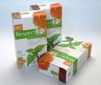 Barve Respect niso testirane na živalih, barve so okolju prijazen izdelek. Barva za lase brez amoniaka z rastlinskimi izvlečki pšeničnih kalčkov, ognjiča in koprive. Respect ima trojni učinek: OBARVA, ŠČITI in REGENERIRA. Čeprav je BREZ AMONIAKA, se lahko po prekrivnosti sivih las meri z vsako barvo na tržišču.