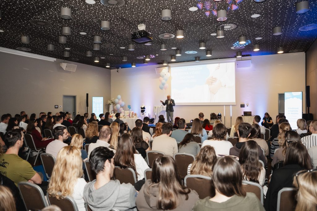 Veliko pozornosti je pritegnilo predavanje gosta presenečenja, antropologa Dana Podjeda, ki je spregovoril o tem, koliko zaslonov je v naših življenjih in kako pomembna sta v času digitalne preobrazbe še vedno pogled in dotik. Njegovo predavanje o ravnotežju med tehnologijo in bližino je bilo eno tistih, ki nas ne more pustiti ravnodušnih. Sledile so teme, ki bodoče starše zanimajo najbolj: kako se pripraviti na porod, kaj lahko pomaga pri porodni bolečini, kako izgleda prvi mesec z dojenčkom in zakaj je dojenje pogosto precej drugačno od idealiziranih predstav, ki jih ustvarjata okolica in družbena omrežja. O tem so odprto spregovorile babica Maja Koprivnikar, anesteziologinja Petra Grbec iz Porodnišnice Postojna, predsednica Društva svetovalcev za laktacijo in dojenje Slovenije Cvetka Skale in pediatrinja Anja Radšel na okrogli mizi Hura! Dojenček – realnost prvega meseca.