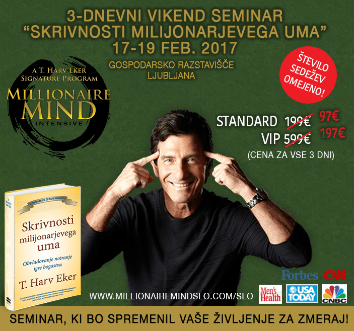 V svetovnem merilu uspešna delavnica ponuja udeležencem praktične napotke za upravljanje lastnih financ in za razumevanje ter dojemanje vloge denarja v današnjem svetu. Nastala je po knjižni uspešnici “Skrivnosti milijonarjevega uma” in je ena od najbolj reprezentativnih izobraževanj mednarodnega podjetja Success Resources. Slovenijo je podjetje prepoznalo kot državo s potencialom tako konferenčne destinacije kot družbe, kjer znanje in učenje predstavljata pomembno vrednoto, zato bo Slovenija kot prva srednjeevropska država gostila delavnico T. Harva Ekerja.